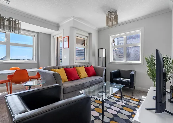 The spacious apartment is just 1.6 km from the BMO Centre, just 0.9 km from the 190.8-meter free standing Calgary Observation Tower, and also steps away from the Compact James Short Urban Park. Guests can easily reach the Glenbow Museum, which is only a 9-minute walk away.